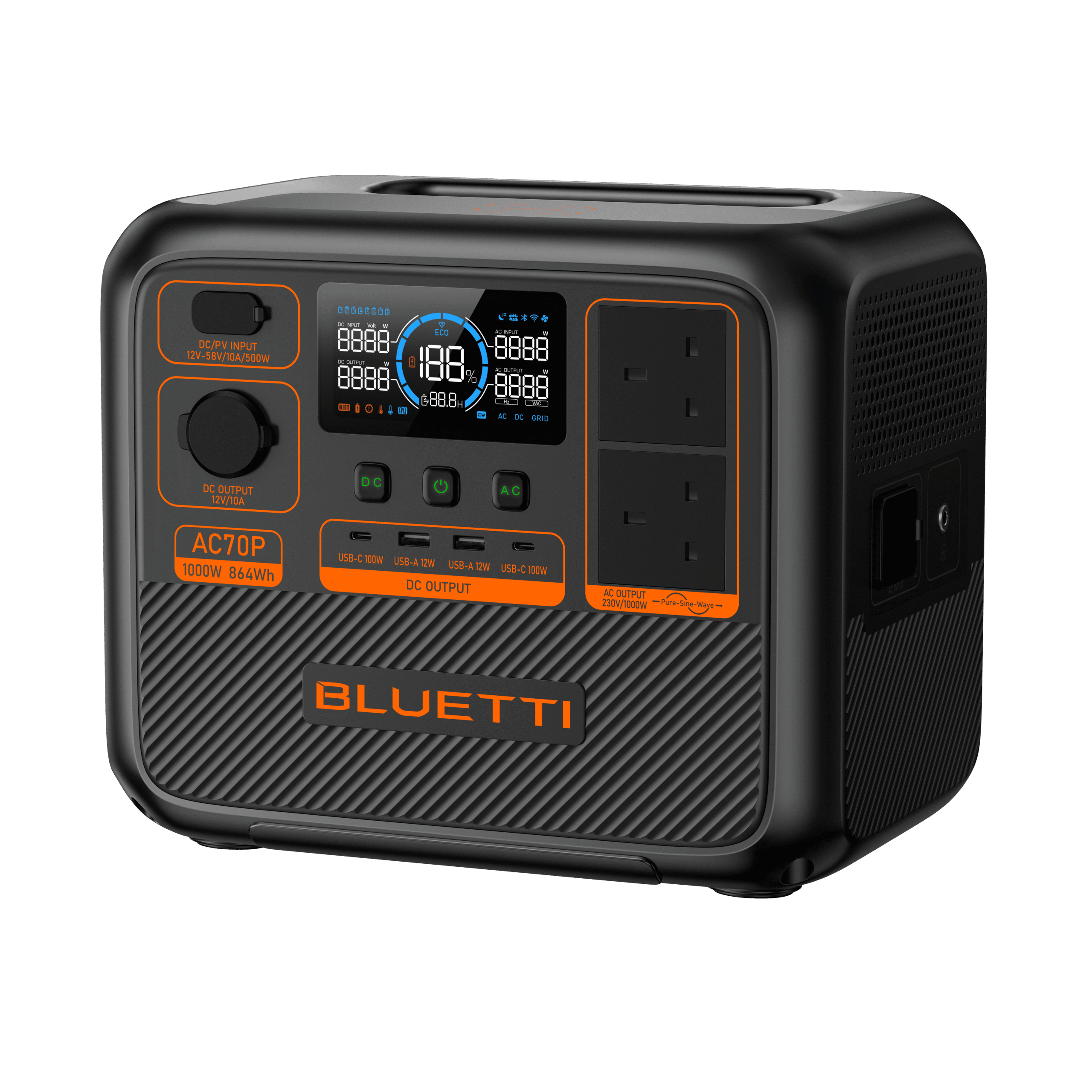Looking for reliable, portable power in Ireland? The Bluetti AC70P is your all-in-one clean energy solution. With an 864Wh LiFePO₄ battery, 1000W pure sine wave output (1500W surge), and ultra-fast charging, it’s ideal for powering your camper van, home office, tools, or essentials during power outages in Ireland.
